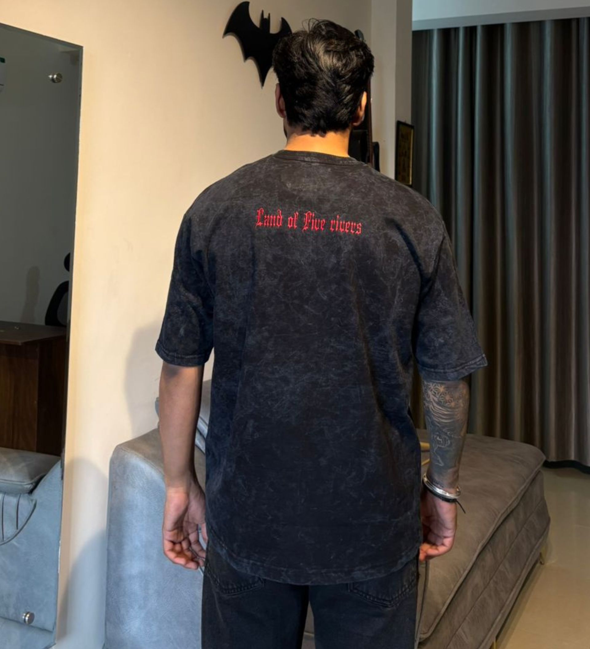 The front embroidery features the bold “PANJAB” lettering, symbolising strength, culture, and identity. On the back, the powerful phrase “Land of Five Rivers” is stitched with fine thread embroidery, designed to stay long-lasting without fading or cracking.
